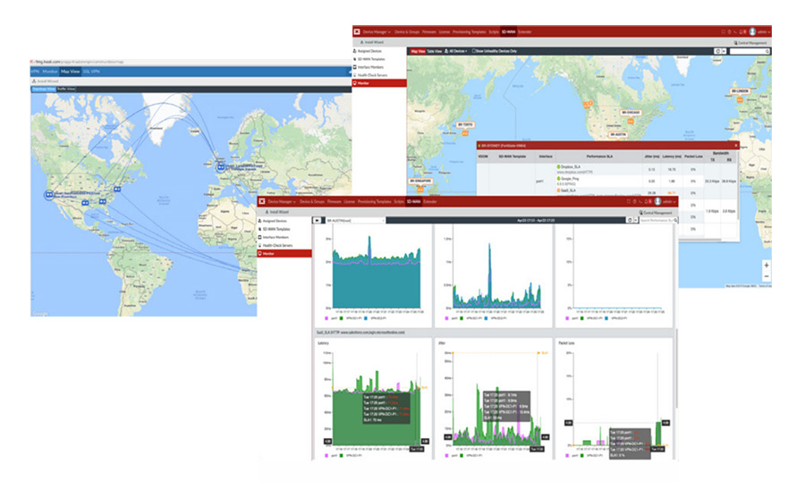 Enhanced analytics for WAN link availability, performance SLA and application traffic in runtime, and historical stats allow the infrastructure team to troubleshoot and quickly resolve network issues. Fabric Management Center offers advanced telemetry for application visibility and network performance to achieve faster resolution and reduce the number of IT support tickets. On-demand SD-WAN reports provide further insight into the threat landscape, trust level, and asset access, which are mandated for compliance purposes.