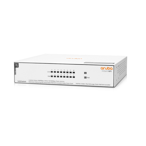 The Aruba Instant On 1430 Switch Series is a plug-and-play unmanaged switch series for small businesses looking for simple, reliable, and lowcost network connectivity. These easy-to-use switches deliver Layer 2Gigabit Ethernet switching capabilities — at an affordable price point — to help connect and share common resources like printers and accesspoints, without any complicated network configuration. With plug-andplay operation, fully automated functions, zero ongoing maintenance, and Power over Ethernet (PoE) models, these switches deliver simple, reliable connectivity for the smallest SMBs and home offices.