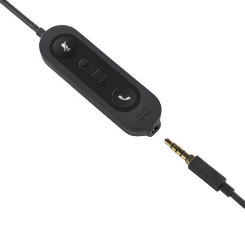 Power 3.5-mm connector: Enables flexible headset use with standard 3.5-mm jacks on laptops, tablets, and mobile phones and connects headset LEDs to power when using an in-line USB headset adapter