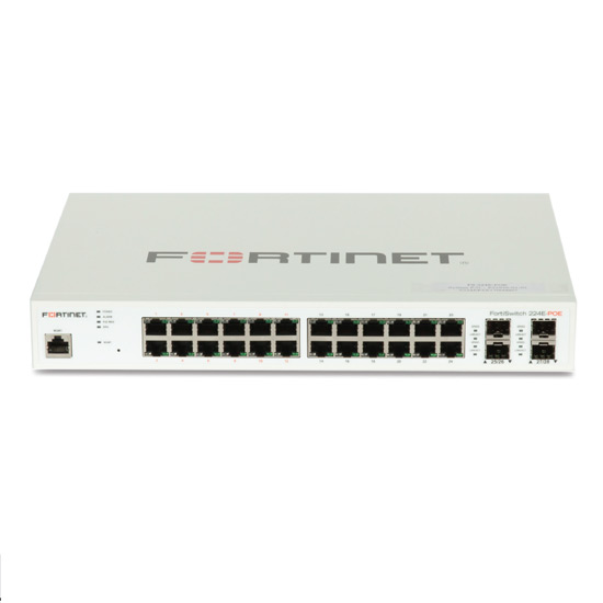 FortiSwitch-224E-POE – FS-224E-POE – Layer 2/3 FortiGate switch controller compatible PoE+ switch with 24 x GE RJ45 ports, 4 x GE SFP, with automatic Max 180W POE output limit