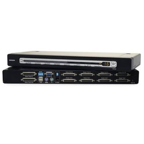 | General | Device Type: KVM switch – 16 ports – stackable Enclosure Type: Desktop Ports: 16 x KVM port(s) Keyboard / Mouse Interface: PS/2 Max Resolution: 1920 x 1440 @ 75 Hz Features: On-Screen Display, firmware upgradable Status Indicators: Port status |